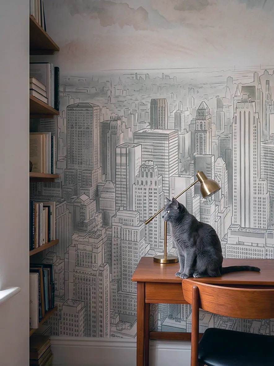Особенно эффектно изображение раскрывается при изготовлении обоев на бесшовных материалах. Цельное полотно позволяет сохранить непрерывность городского рисунка, подчеркнуть глубину композиции и сделать стену визуально более цельной и архитектурной.