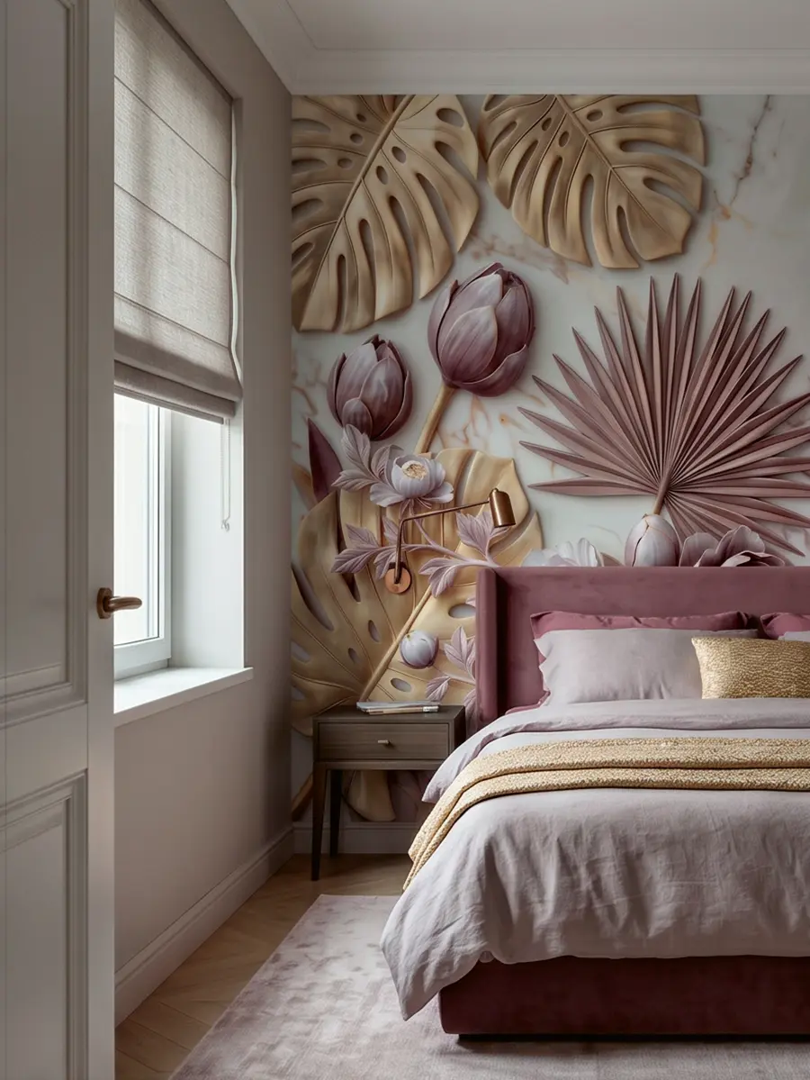 Дизайн идеально подойдет для пространств, где важны спокойствие, уют и декоративная выразительность. Нежная палитра в оттенках пыльной розы, бежевого, кремового и матового золота легко сочетается с современной мебелью, латунными деталями, светлым деревом и текстилем натуральных тонов.